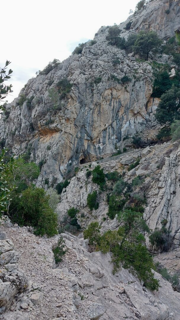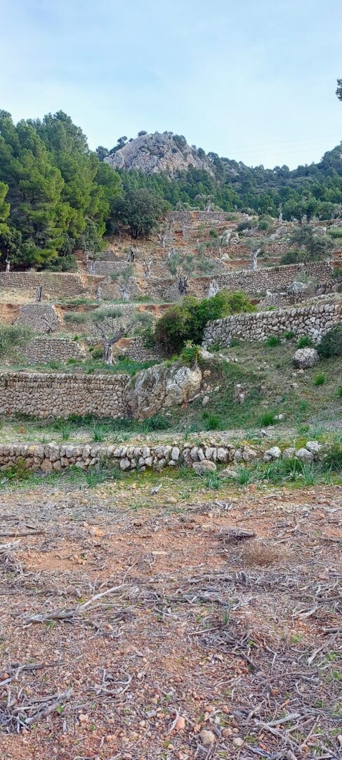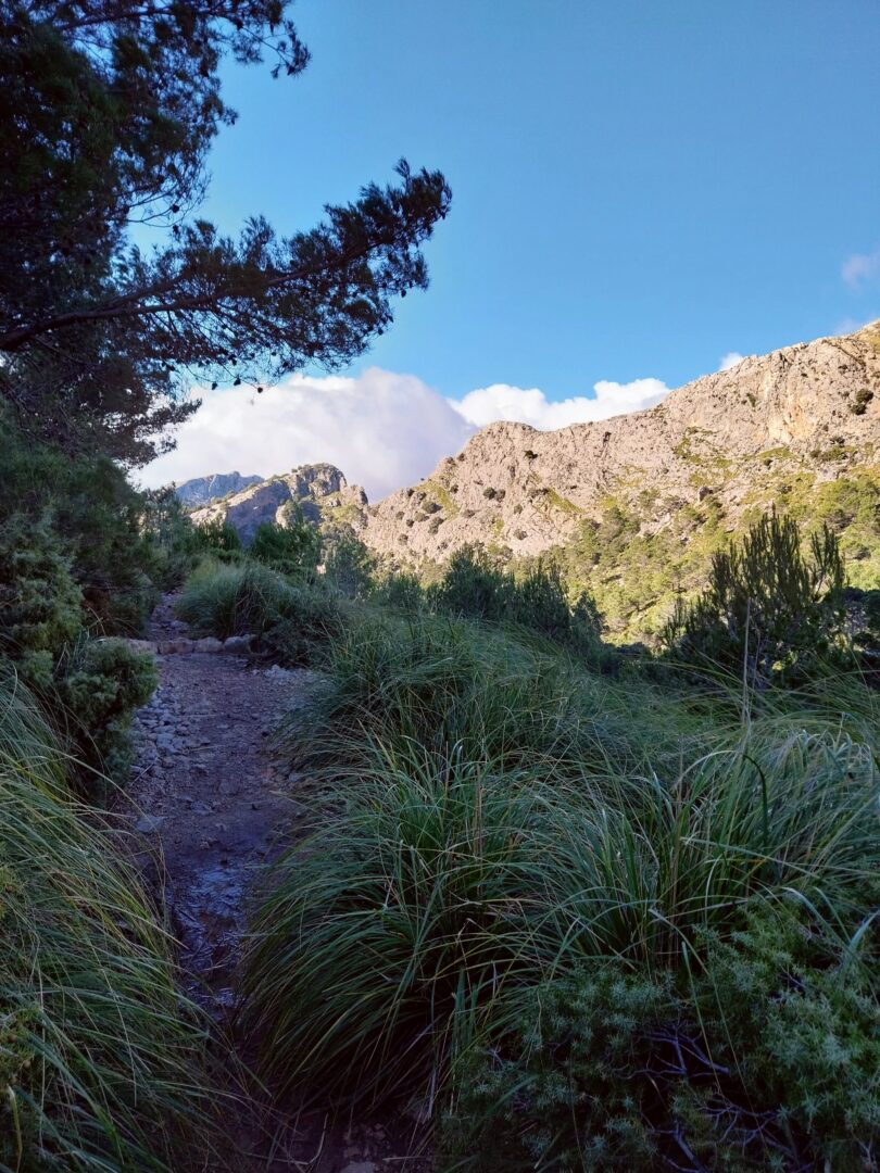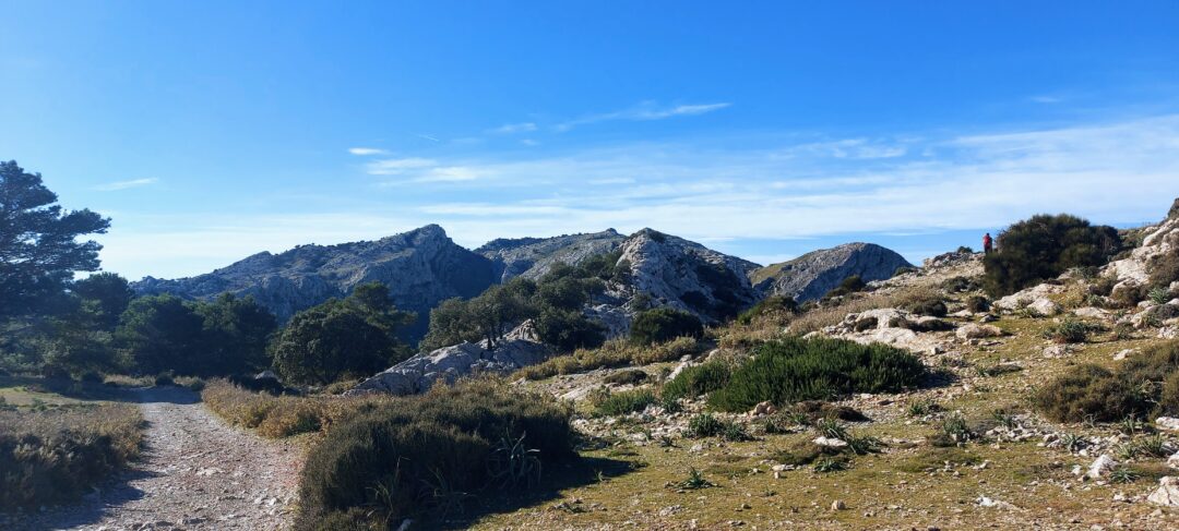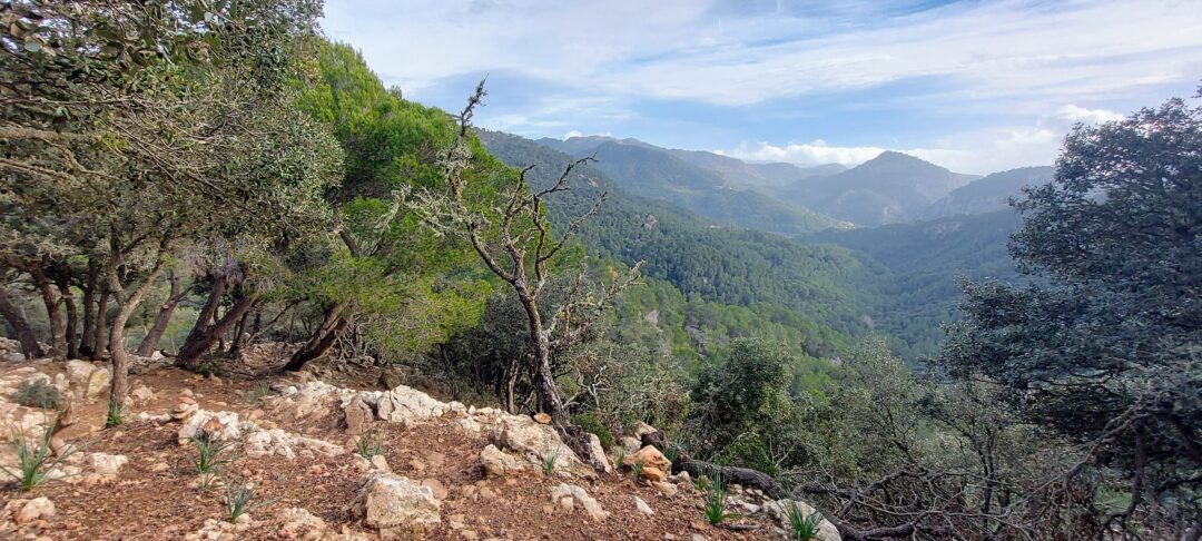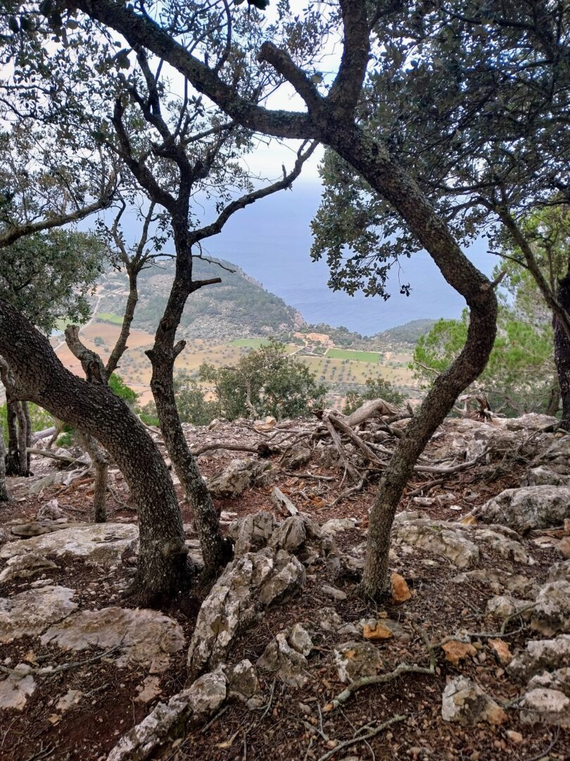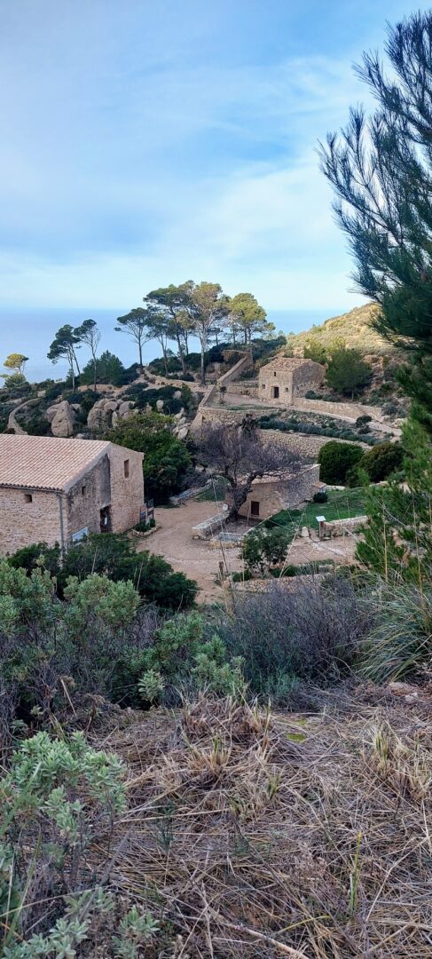 Prechádzame okolo kláštora La Trapa, ktorý turistom poskytuje možnosť stanovania na pozemku. Stretávame tu prvých hikerov – Čechov, ktorí trek už končia. Práve Česi sú početná skupina na GR221 🙂 . Odovzdávajú nám štafetu slnečného počasia (ani raz im nepršalo) a pokračujeme ďalej. Otvárajú sa prvé výhľady na členité pobrežie a majestátne pohorie Serra de Tramuntana.