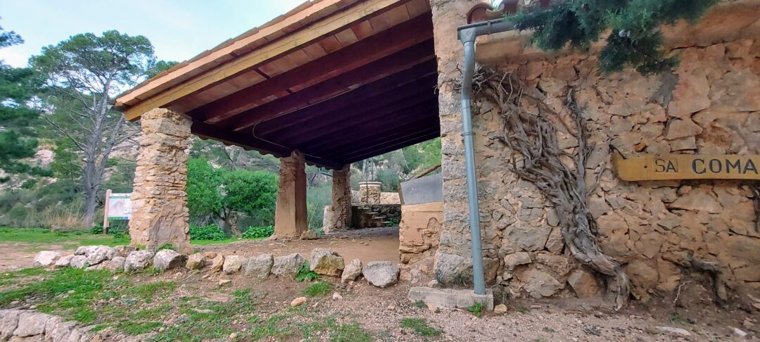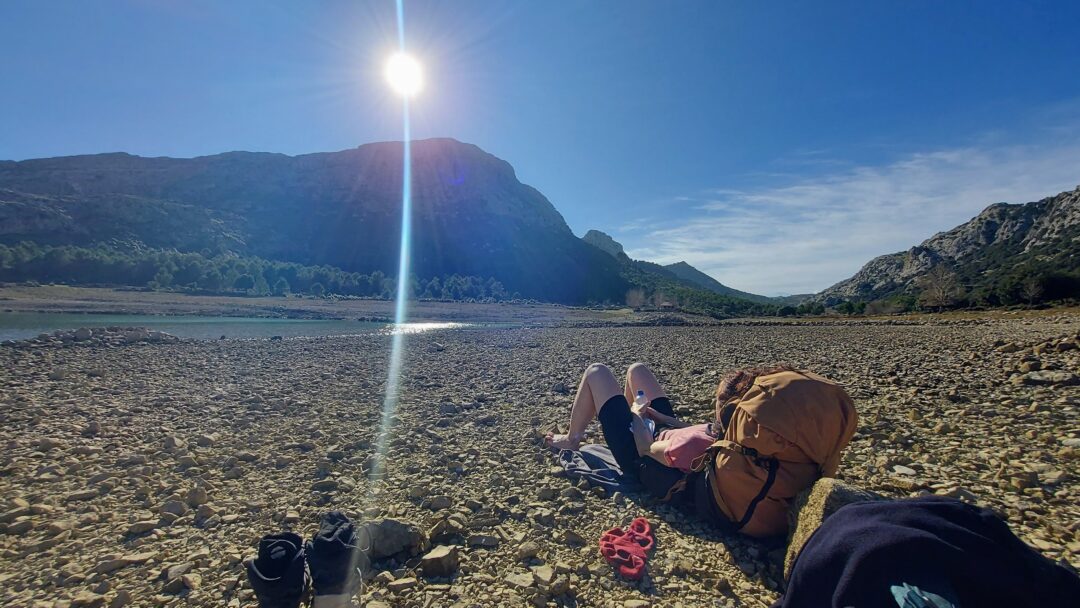 Je 4. január, vonku asi 17˚C, pocitovo 25°. Každá si nesieme 3,3 L vody a vieme, že si ju nesmieme celú vypiť. Až do mesta Estellencs nie je spoľahlivý zdroj pitnej vody. V meste budeme až zajtra doobeda. Filter nosím pre istotu so sebou. Plánujeme spať pri refugiu Coma d’en Vidal, pri ktorom podľa mapy má byť voda, ale realita je taká, že je to napájadlo pre zvieratá. Prichádzame ku refugiu, každá máme ešte 1,5 L vody. Akurát na navarenie večere, čaju pred spaním a hygieny. Zhodujeme sa na tom, že ísť v teplejšom počasí by nebola sranda.