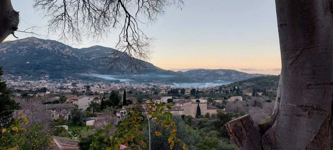 Šľapať začíname pred ôsmou a po asi hodine sa dostávame vyššie nad mesto, odkiaľ máme výhľad na prebúdzajúci sa Soller. Ako za odmenu 🙂 .