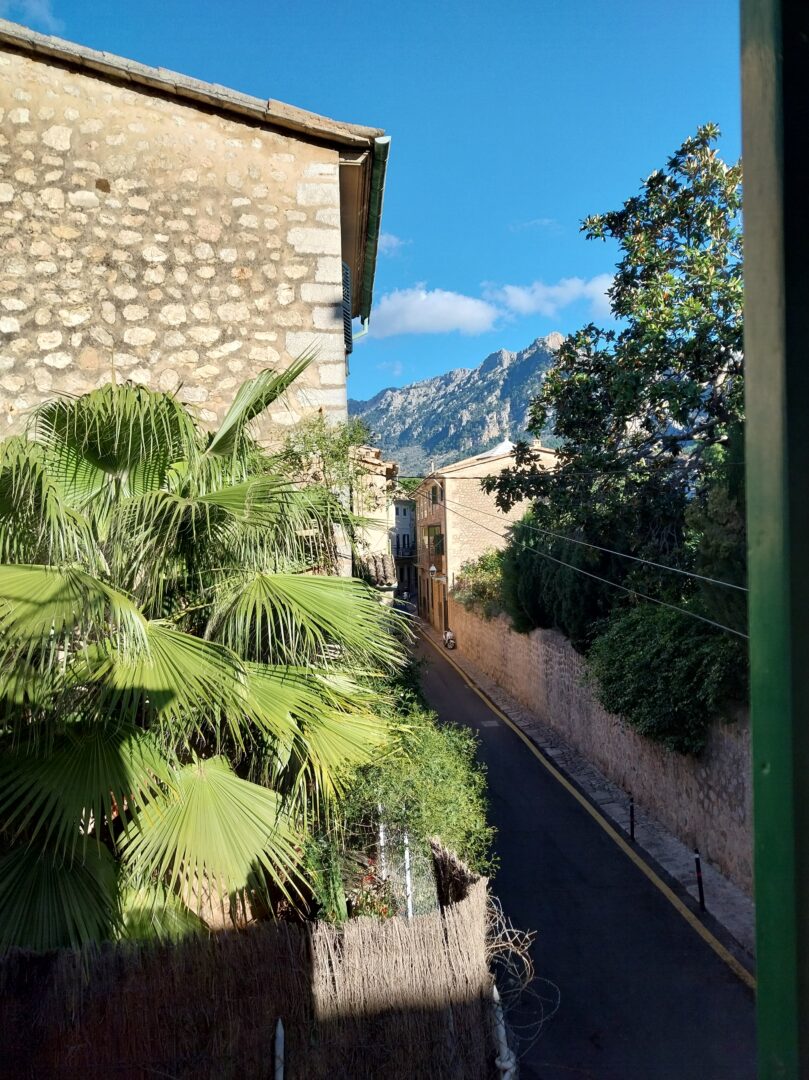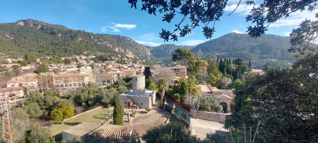 Do Valldemossi sa veľmi tešíme. Nie len preto, že je to krásne historické mestečko, ale si konečne môžeme doplniť vodu, jedlo a kúpiť kávu. Veľké sedenie nehrozí (skrz ranný omyl). Kapučíno, káva, dokúpenie vody, dve bagety a šup nastúpať 600 m. Pomaly sa začína zdvíhať vietor a pribúda oblačnosť. Nechceme zmoknúť, tak pridáme do kroku. Hore sa nám však naskytnú dychberúce výhľady, pri ktorých zjeme neskorý obed. Prvý krát obliekame bundy, kvôli studenému vetru.